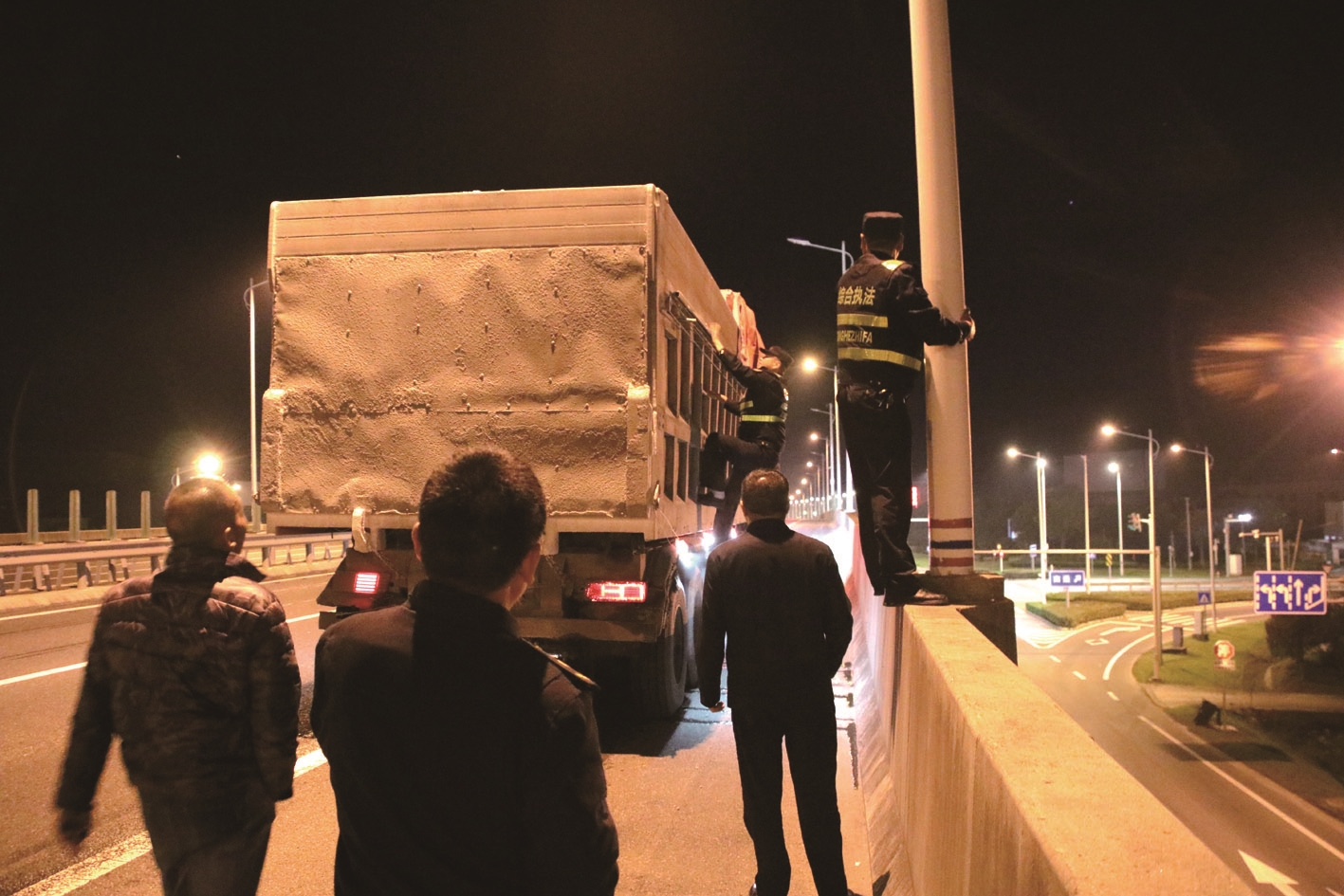 夜查跨区域偷运偷倒建筑垃圾车辆
