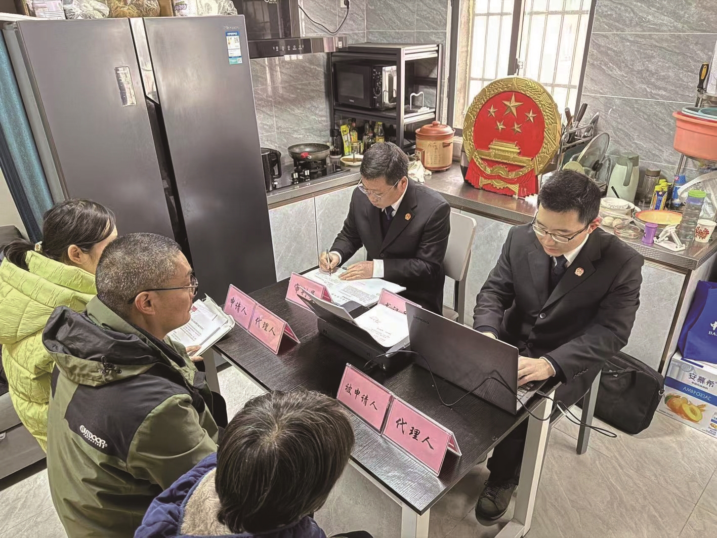 “谢谢法官了!辛苦你们赶到扬州来开庭。”2024年3月1日,民一庭庭长范斌上门审理一起申请宣告自然人无民事行为能力并指定所在社区居委会为监护人的案件,当事人十分感动。