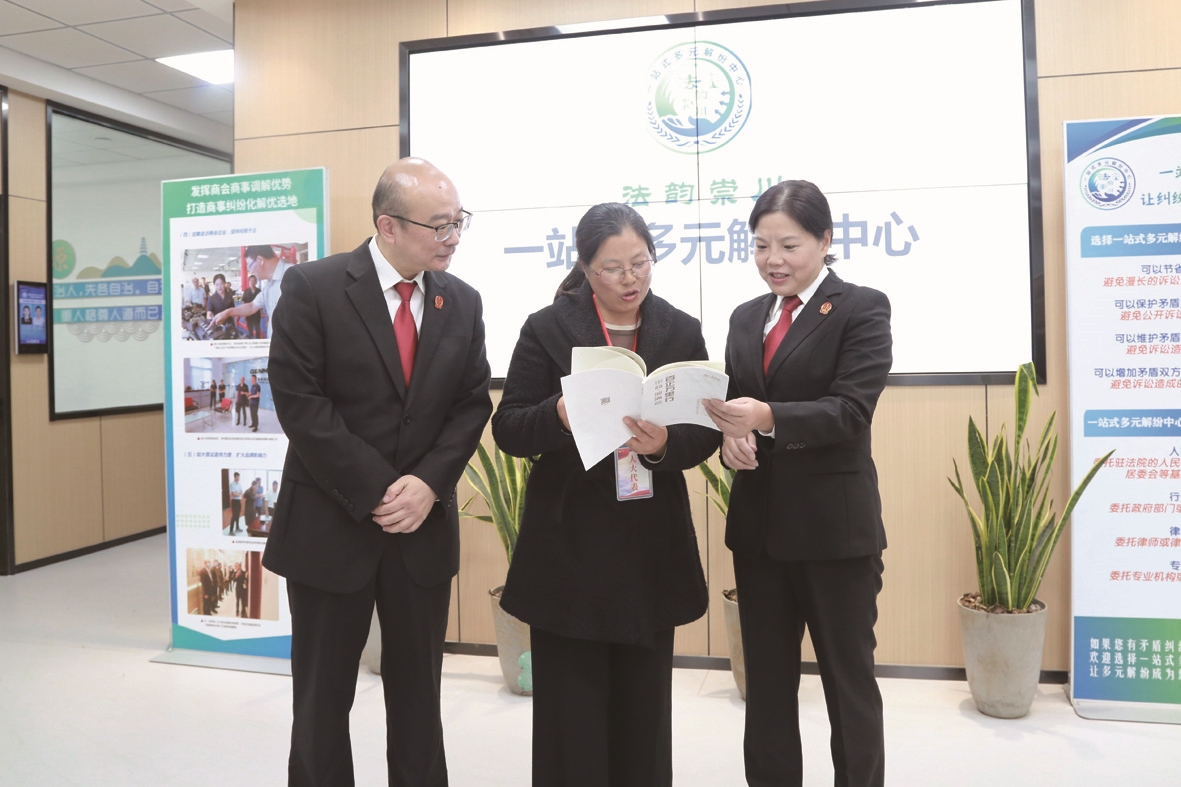 2024年12月6日,全国人大代表、通州区东社镇开心田园生态农场农场主孙春梅在翻阅崇川法院编印的《“崇商·濠满意 百企万里行”企业常见法律风险防范》一书时,对该院全流程优化营商环境的举措表示赞赏。