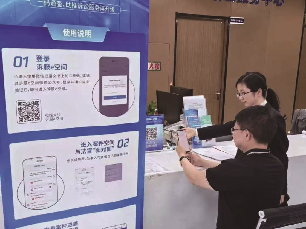 海安法院干警有序引导代理人及来访群众使用“诉服e空间”。