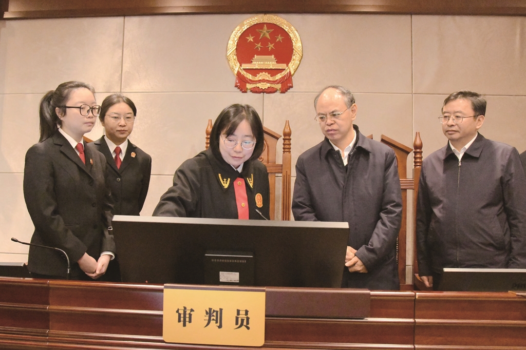 2024年12月12日,江苏省法院党组书记、院长夏道虎在如东法院调研无纸化办案工作情况。