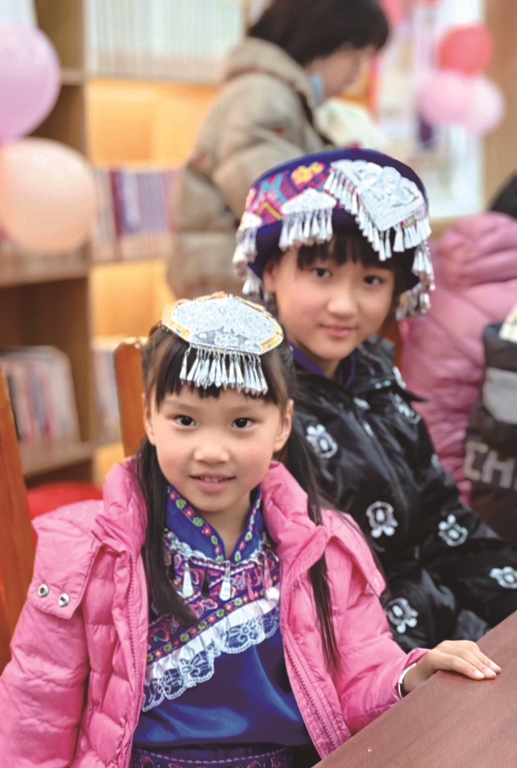 到了才艺展示的环节,谭翠容两个身着土家族传统服饰的大女儿杨紫涵和6岁妹妹杨紫沫率先上场,蓝色绣花裙、银饰头饰在灯笼与彩灯的映衬下格外耀眼,一下子吸引了众人的目光。