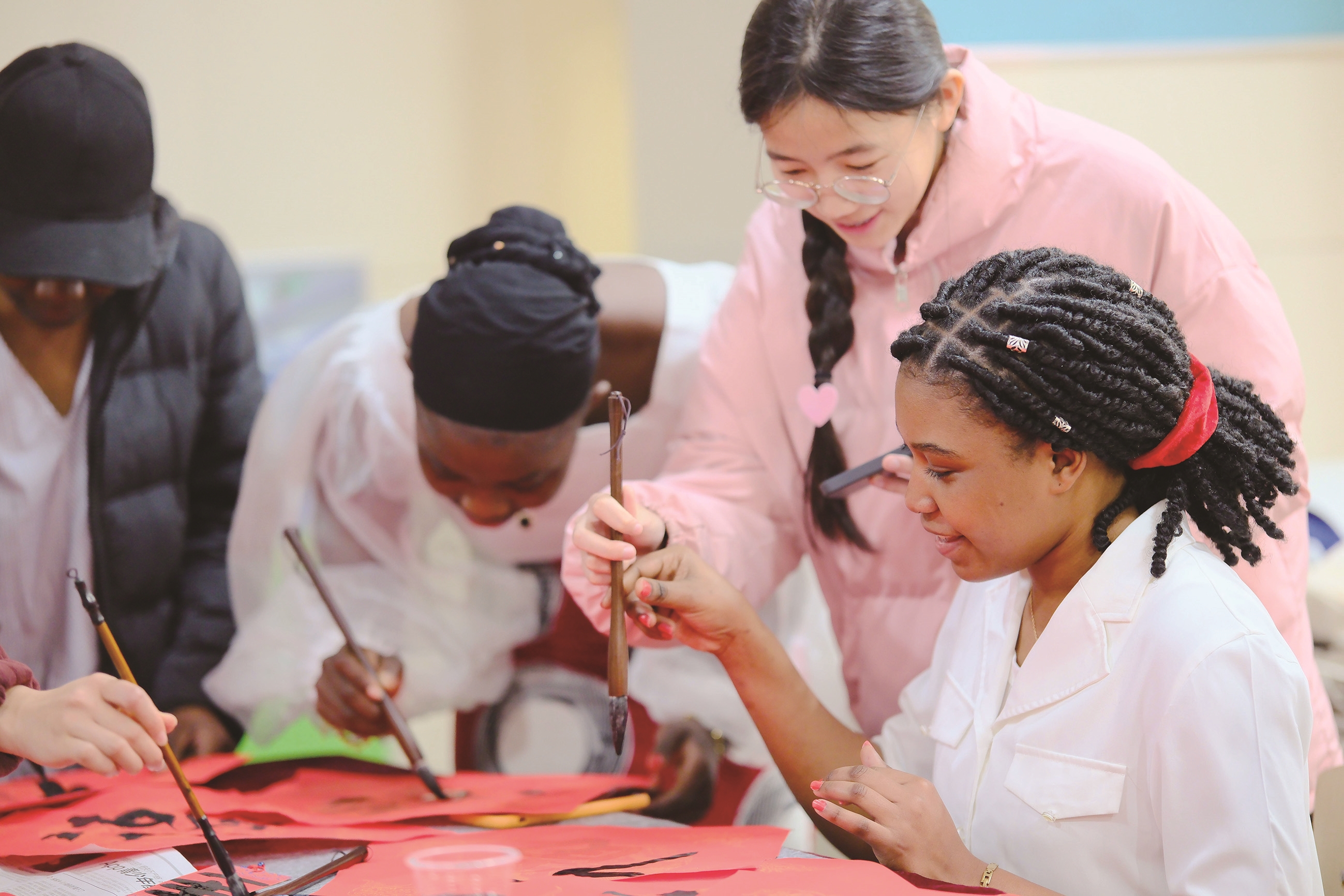 On 22nd January, School of International Cooperative Education of Nantong Vocational University carried out international students’ Spring Festival series events. International students from countries including Namibia, Pakistan, Laos and Vietnam learnt dragon dance, wrote ‘Fu’ characters, wore Hanfu and performed songs and dances, to experience the culture of Chinese New Year. Photo by Xu Peiqin