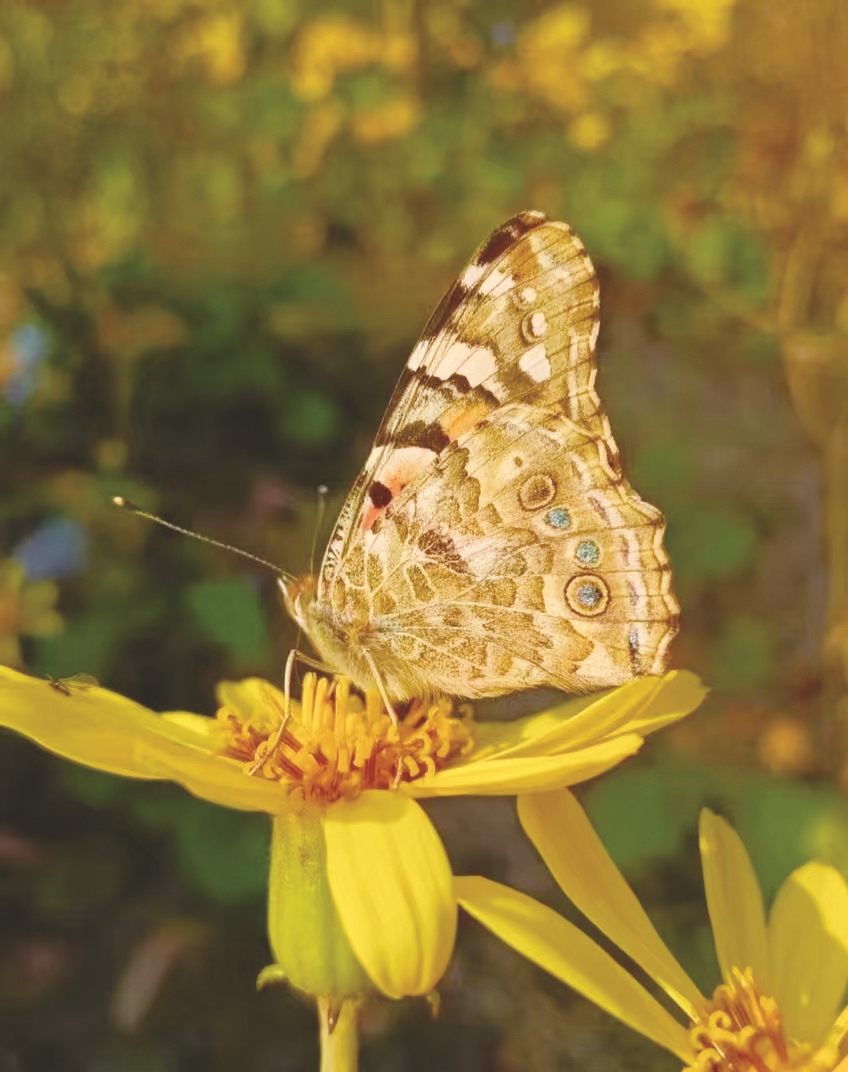 凌冬将至,小春日和,公园里的菊花开得如火如荼,惹来蝶飞蜂鸣,好不热闹。仔细去分辨,常见的白蝶、罕见的黄蝶、穿着豹纹的蛱蝶、翅膀微微发紫的灰蝶,偶尔还会飞过一只自我伪装的枯叶蝶,简直比真正的春天还要有春天气象。纷纷扰扰的尘嚣之外,这无人光顾的公园一隅,因一片自开自谢的花丛、一群不请自来的蝴蝶,成为冷冷清清而又风风火火、袅袅悄悄却又热热闹闹的自在小天地。