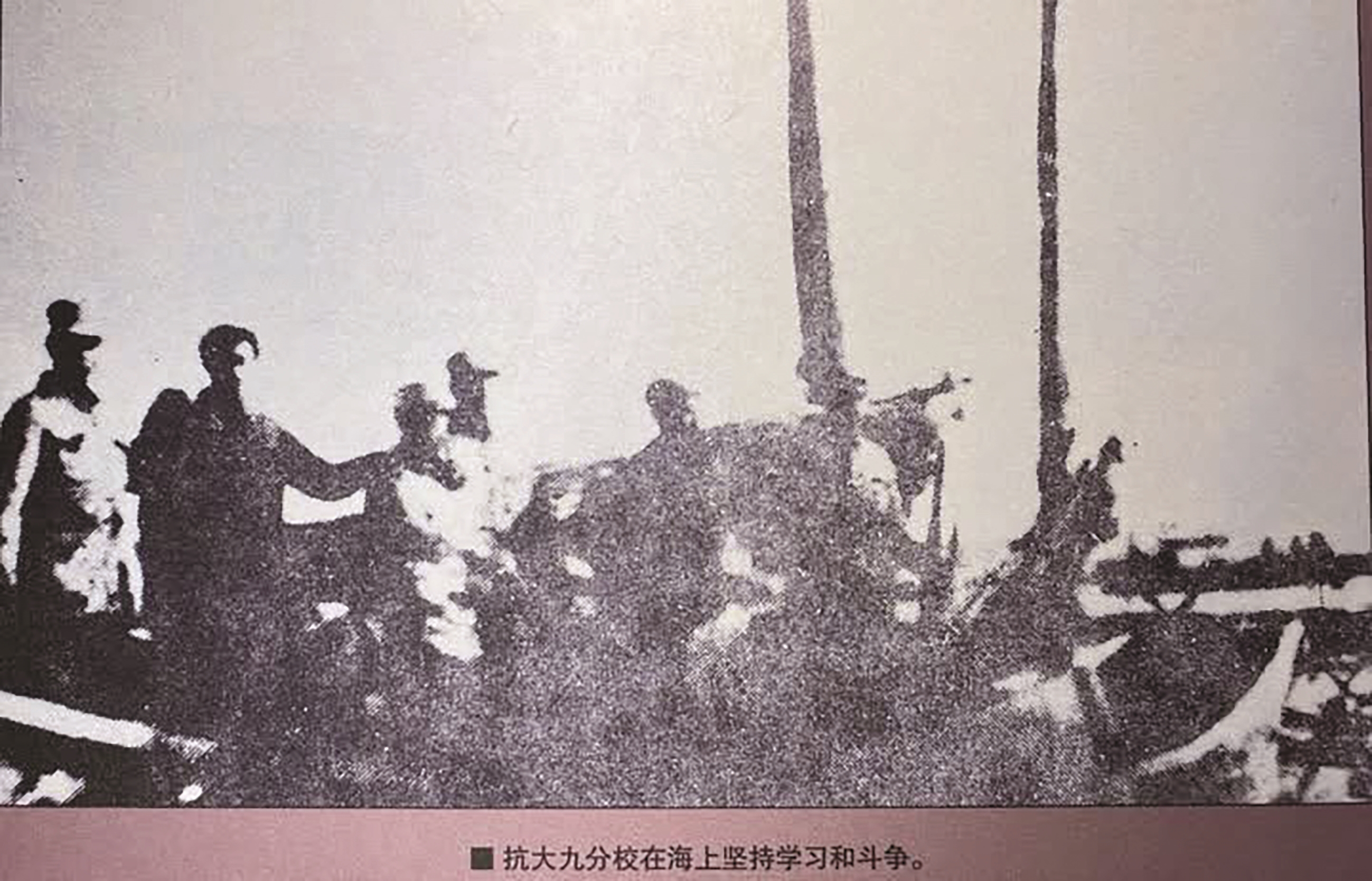 1942年6月15日,日伪军3500余人分九路“清剿”我苏中四分区,形势十分严峻,抗大九分校奉命突破封锁线,撤离启东。全体师生从吕四港附近的三甲镇入海乘船北上。在海上生活时,集中上课已不可能,主要以分散自学为主,教员分散下队,组织分组讨论和辅导,生活十分艰苦,淡水吃完,用海水拌的元麦炒面,难以下咽。经过十多天海上漂泊,师生向弶港转移。