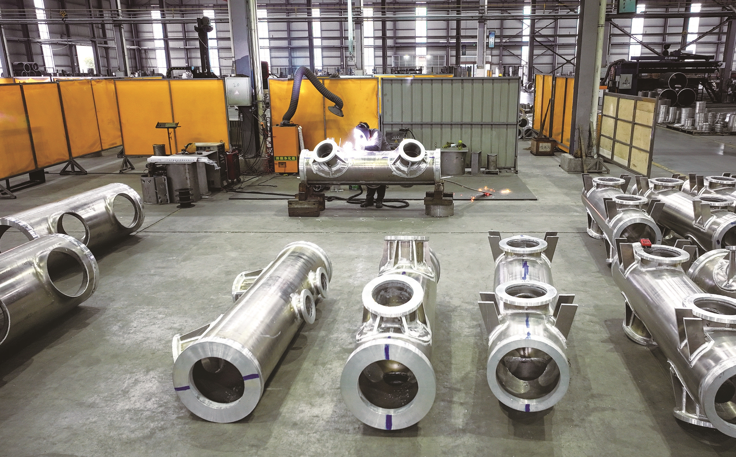 昨天,在位于海安高新区的通为电气海安有限公司车间内,工人正忙着生产与GIS高压开关相配套的铝制、钢制壳体订单。连日来,海安企业纷纷抢抓开局有利时机,铆足干劲忙生产,开足马力赶订单,力争取得首季“开门红”。 顾华夏摄
