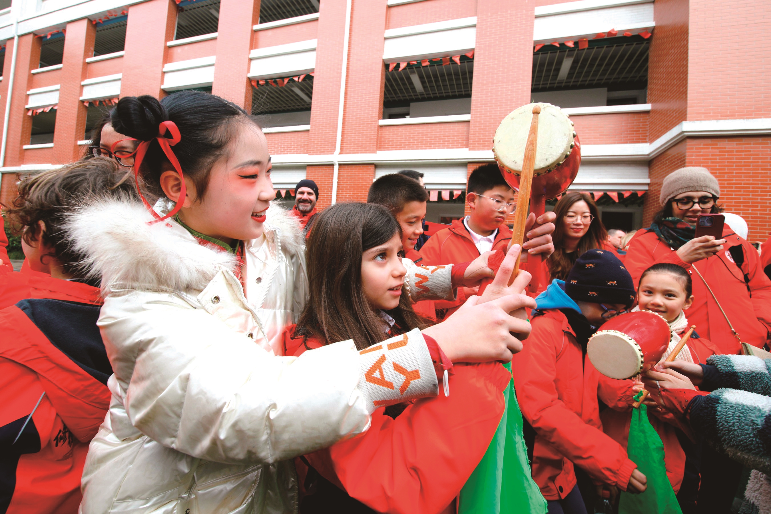 昨日,在海安市城南实验小学,意大利小朋友现场体验海安花鼓。当天,意大利中意国际学校一行45人第二次来到海安市,进行为期三天的“跨越山海 童心筑梦”第二届中意学校文化交流与体验活动。