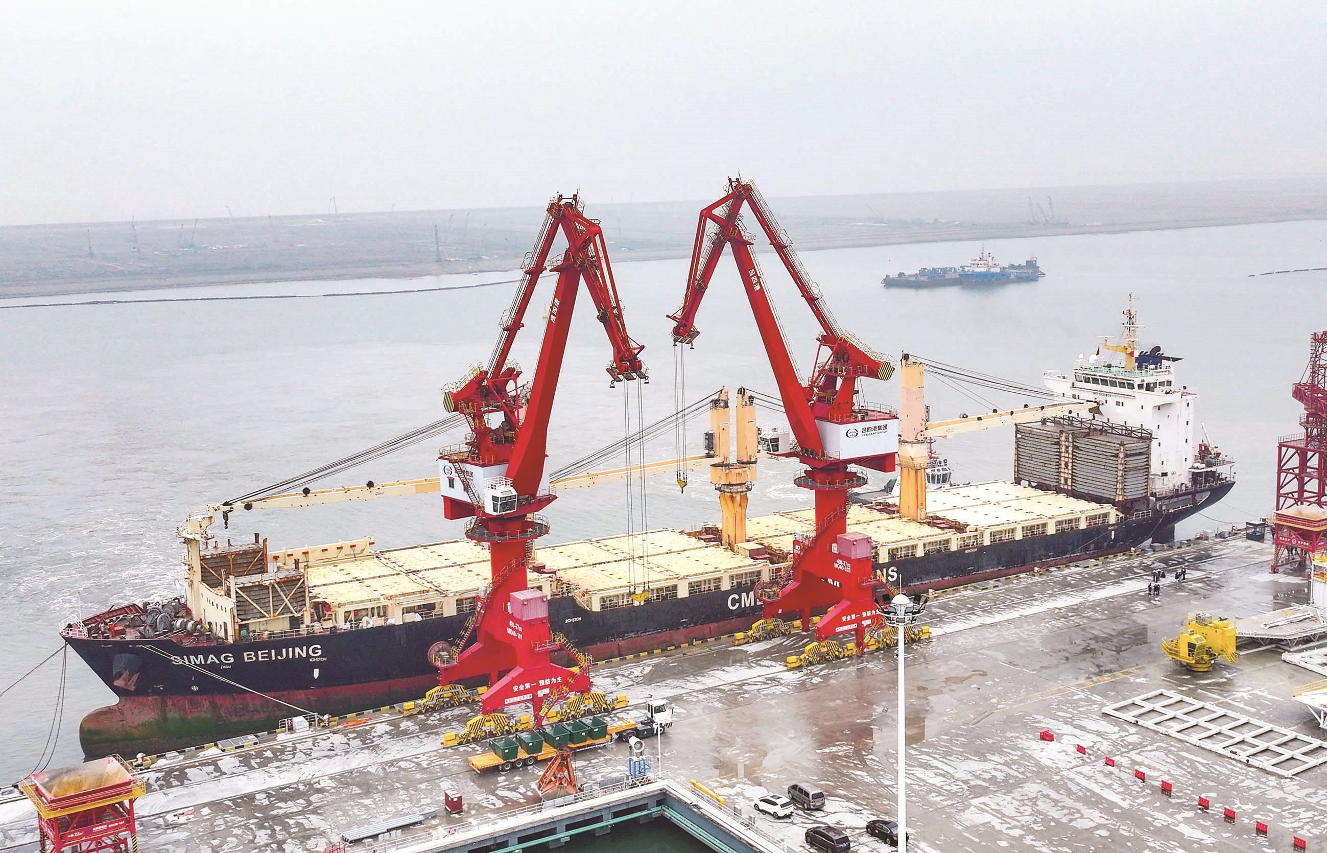 On 27th February, Panamanian ship ‘SIMAG BEIJING’ berthed at Lvsi Port Heavy-duty Terminal, marking the official start of the 50,000 ton berth’s foreign trade qualification.