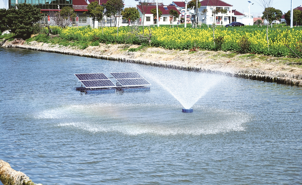16日,在海安滨海新区富港村马坝桥河面上,漂浮式太阳能曝气机正在给河道水体增氧。近年来,海安全域推动农村生态河道建设,更多“河畅、水清、岸绿、景美”的幸福河湖,成为农村人居环境的亮丽风景线。顾华夏摄