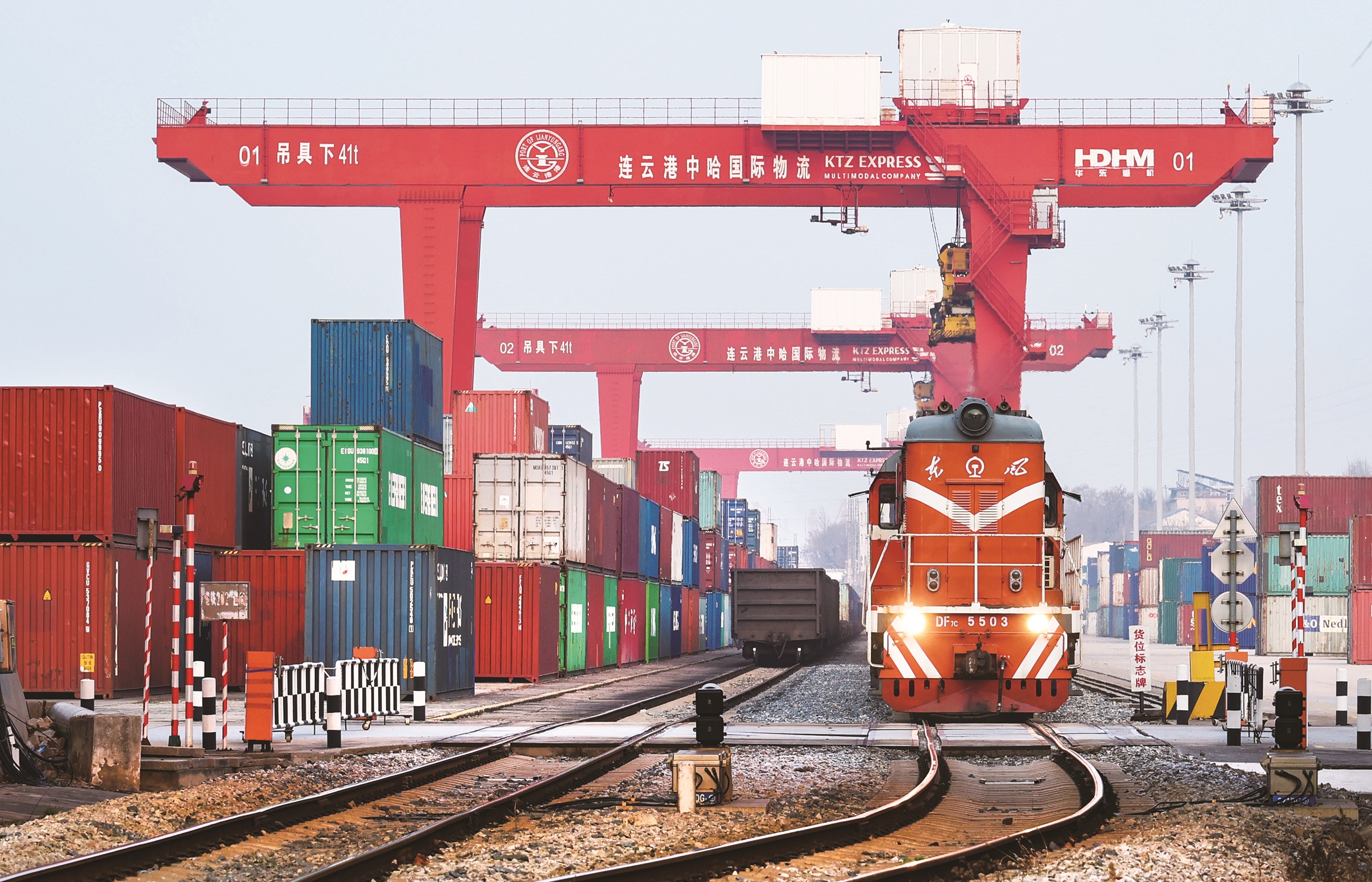3月10日,一列满载二手车、汽车零配件的中欧班列从中哈(连云港)物流合作基地出发。今年前两个月中欧班列累计到发176列,同比增长22.9%。 新华社照片