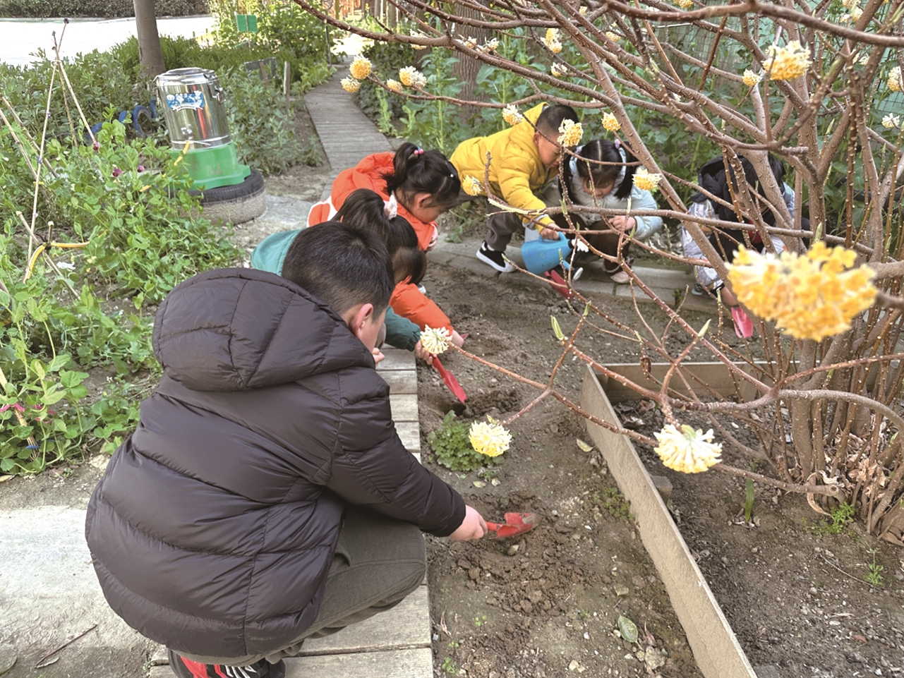 19日,孩子们在校园参与种植活动。当天,如皋市外国语学校附属幼儿园第十一届“苗苗”种植节开幕。孩子们开启了一段亲近自然、感悟生命的奇妙旅程。