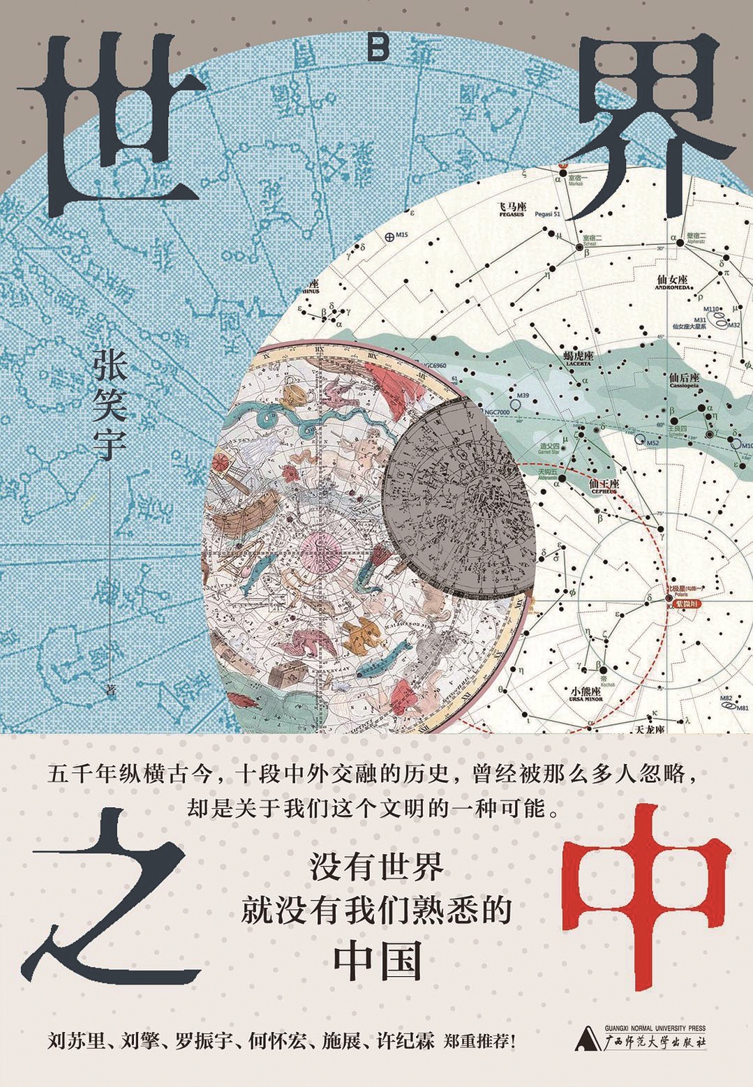 《世界之中》张笑宇广西师范大学出版社 从中国的远古时代到清末,本书摘取了十个鲜为人知又影响深远的历史片段,呈现这样一个事实:中国是被世界多元力量共同塑造之中国。本书视角独特,观点精奇,将政治学、经济学、国际关系学、考古学等众多理论融会贯通,展示了曾被忽略又不得不叹为观止的历史画面。