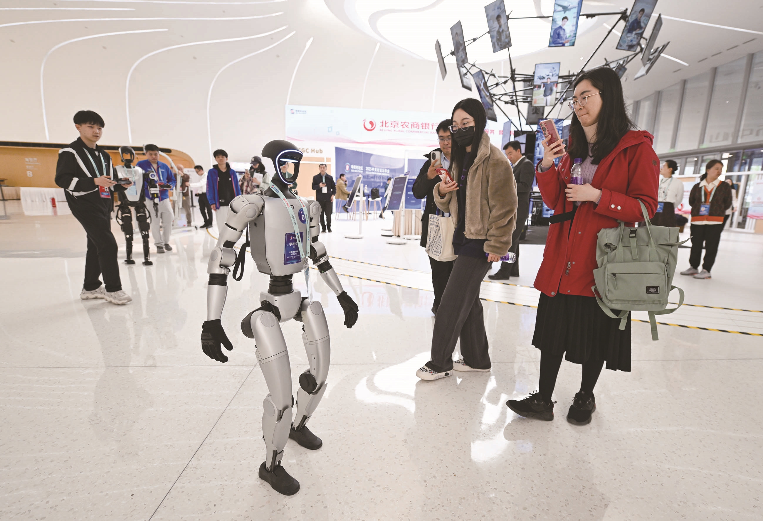 3月26日,中关村国际创新中心的一款正在行走的宇树G1机器人吸引人们拍照留影。3月27日至31日,主题为“新质生产力与全球科技合作”的2025中关村论坛年会,将在位于北京市海淀区的中关村国际创新中心举行。 新华社照片