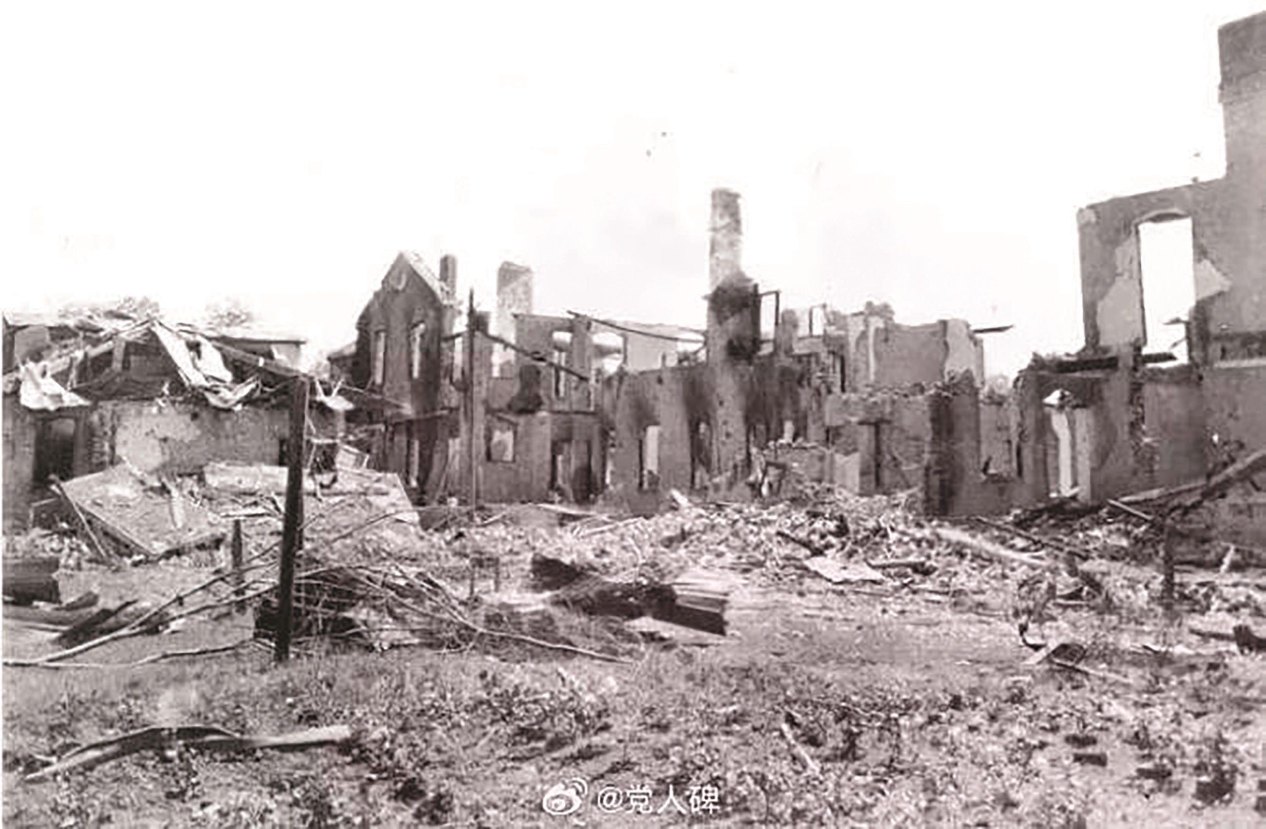 上图左起:林弥励,李方训,日军飞机轰炸南通州基督医院后的断壁残垣。