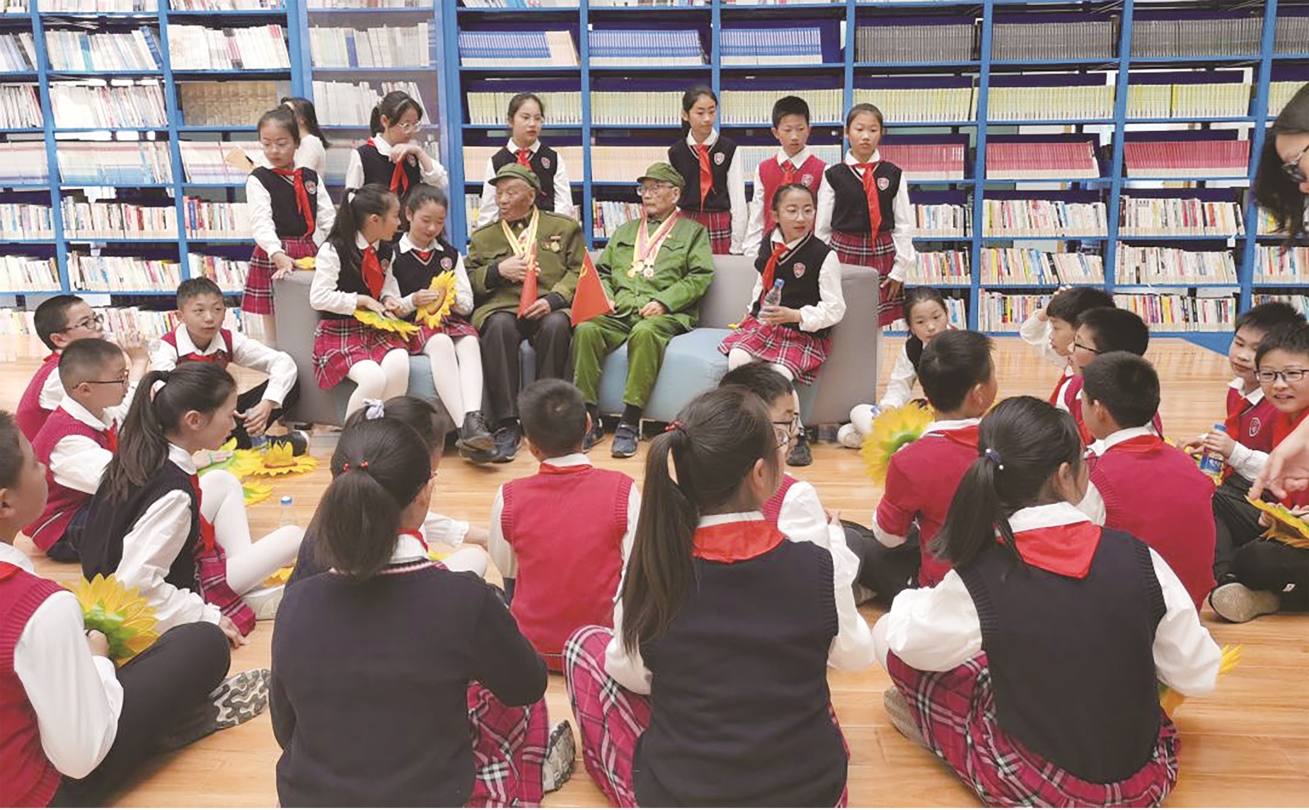 近日,通州区离休老干部曹邦裕、于建在区图书馆为少先队员讲述参加抗日战争、解放战争的故事,勉励同学们传承革命精神,争做时代新人。