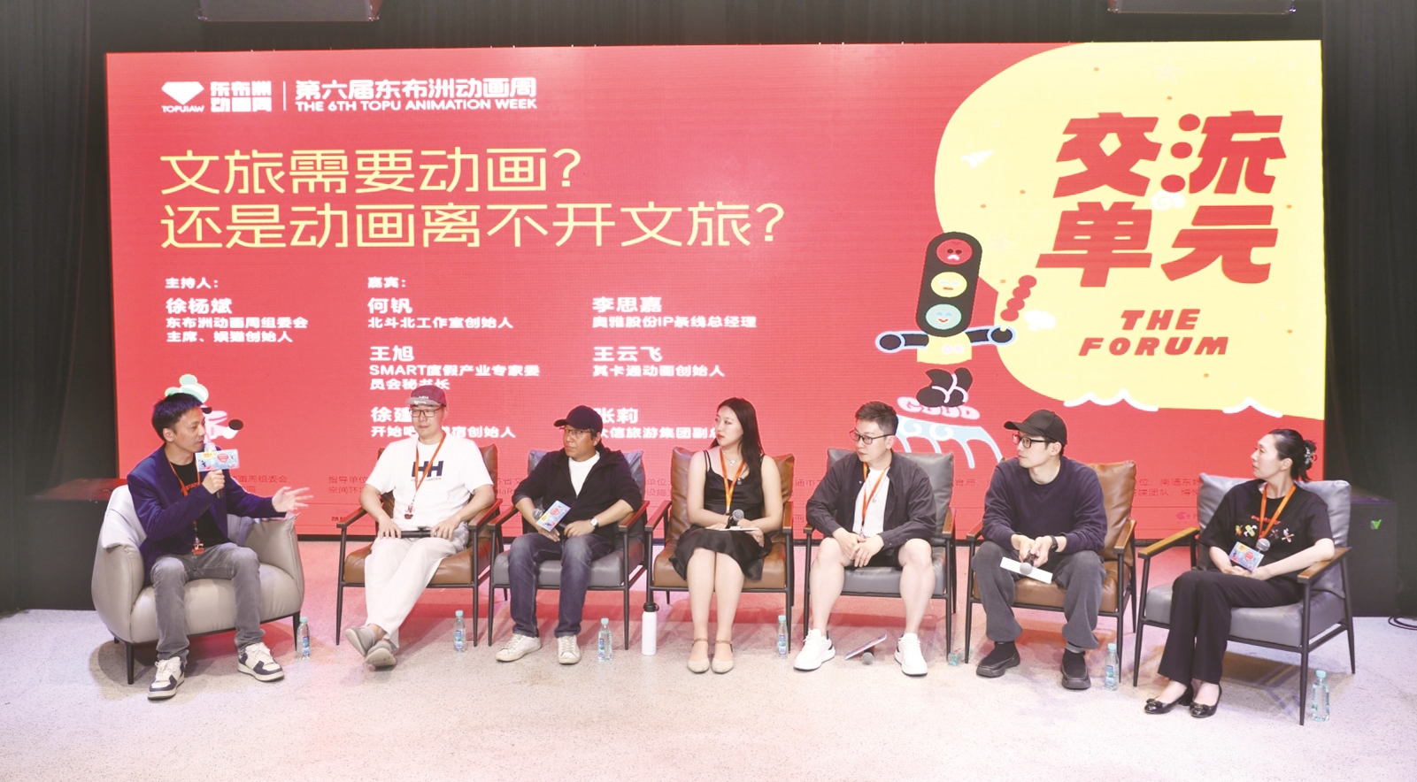 在文旅+动画的讨论中,嘉宾围绕两者融合的可能性展开热烈探讨(上图),一致认为跨界融合将催生出全新业态与消费场景,为两个行业带来广阔发展空间。