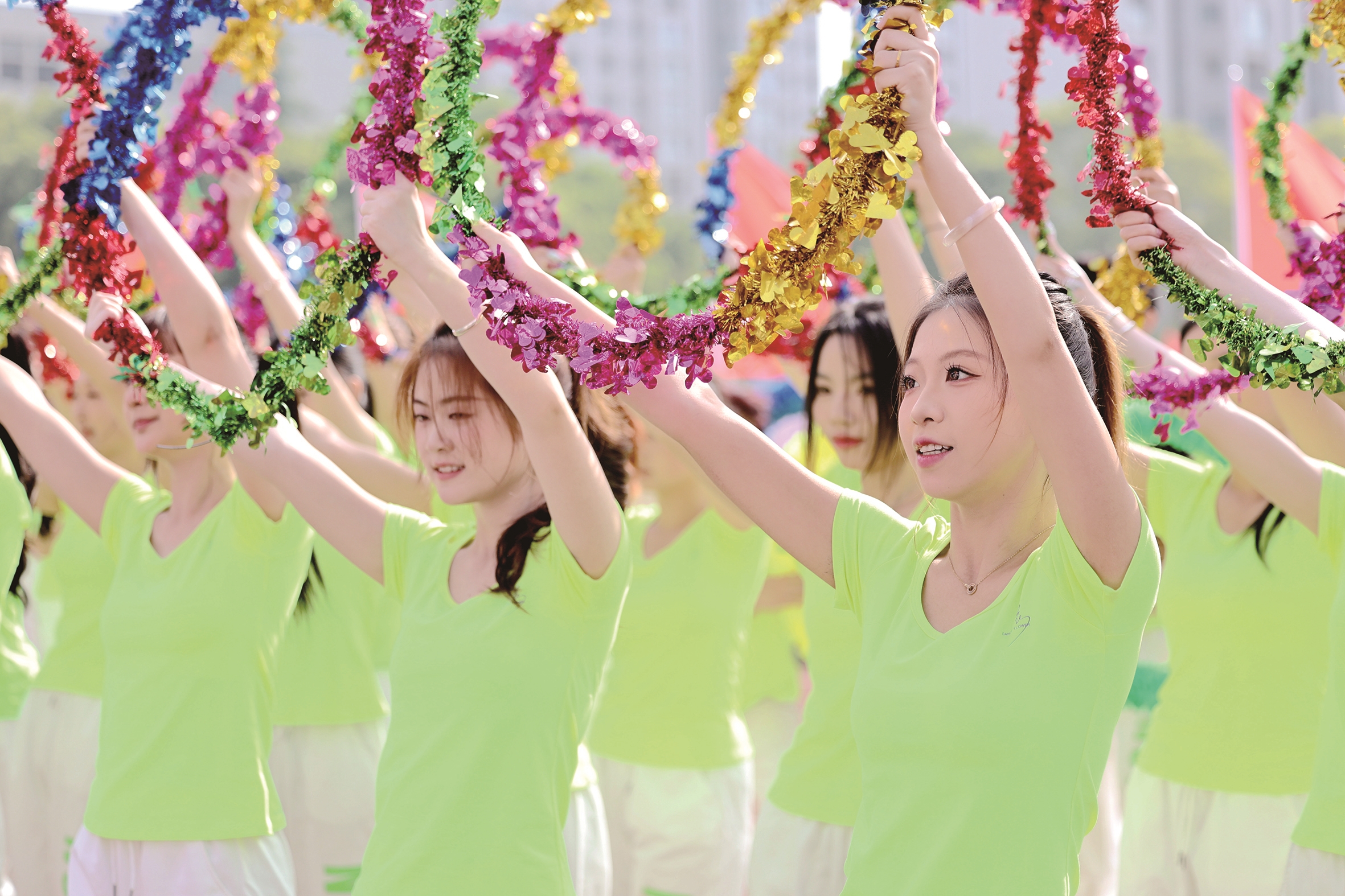 昨天,南通科技职业学院第四十届学生田径运动会暨第十三届教职工运动会开幕,各学院方阵在入场式上百花齐放,表演了武术、啦啦操、舞蹈等精彩纷呈的节目,展示了当代大学生的青春活力和风采。记者 徐培钦 实习生 贾冯翔摄