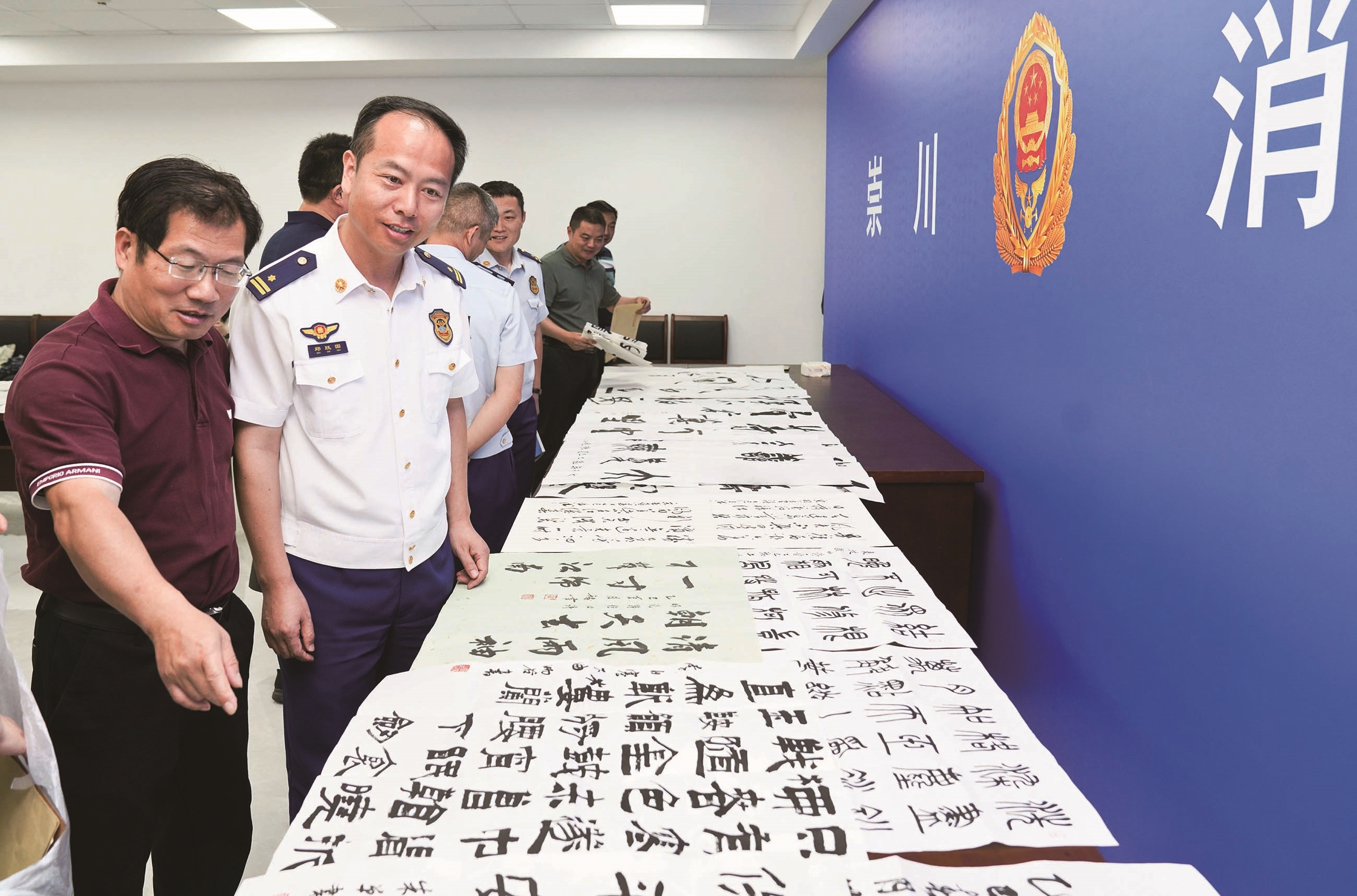 昨日,崇川区退役军人事务局、区书法协会组织8名书法家来到区消防救援局,开展“倡廉拒腐 书画传韵”主题创作活动。