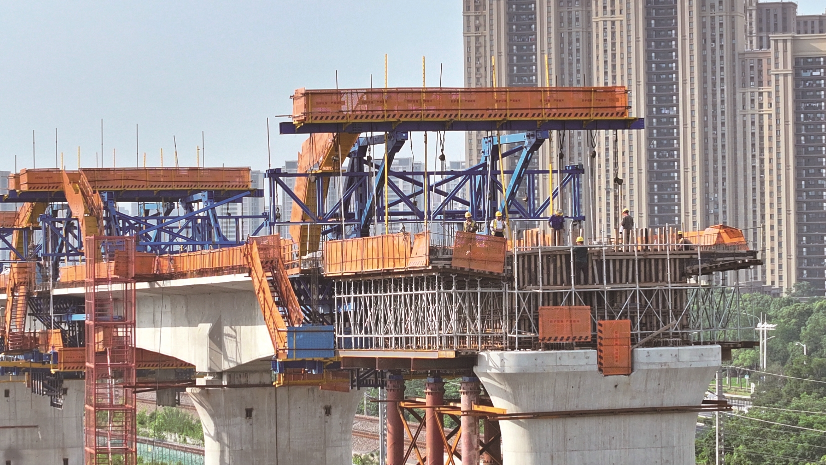 20日,位于崇川区幸余路、通刘公路附近的沪渝蓉高铁南通地区站前1标工地一派繁忙,施工人员抓紧施工赶进度。 李斌摄