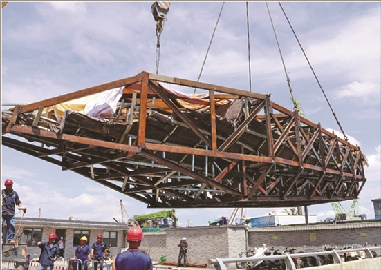 2号沉船于2022年发现于朔门古港遗址主城门以北7号码头外侧江底,距地表约10米,上部覆盖4米多厚泥砂层。在充分听取国内遗产保护、水下考古、古船研究、工程技术等领域的专家意见后,2号沉船采取“截桩整体提取”方式,以实现对文物的最大化保护,并于今年3月启动实施搬迁保护方案。