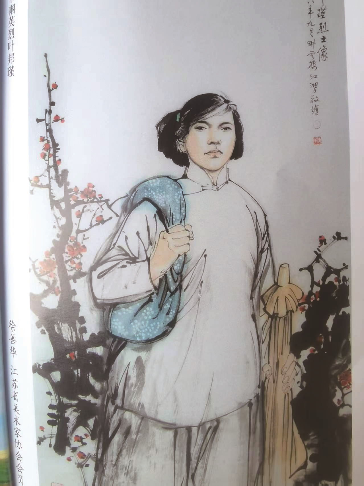 下图左起:叶邦瑾生前留下的唯一一张照片;江苏美协徐善华的水粉画《叶邦瑾烈士像》;《江海导报》上叶邦瑾被杀害的消息。