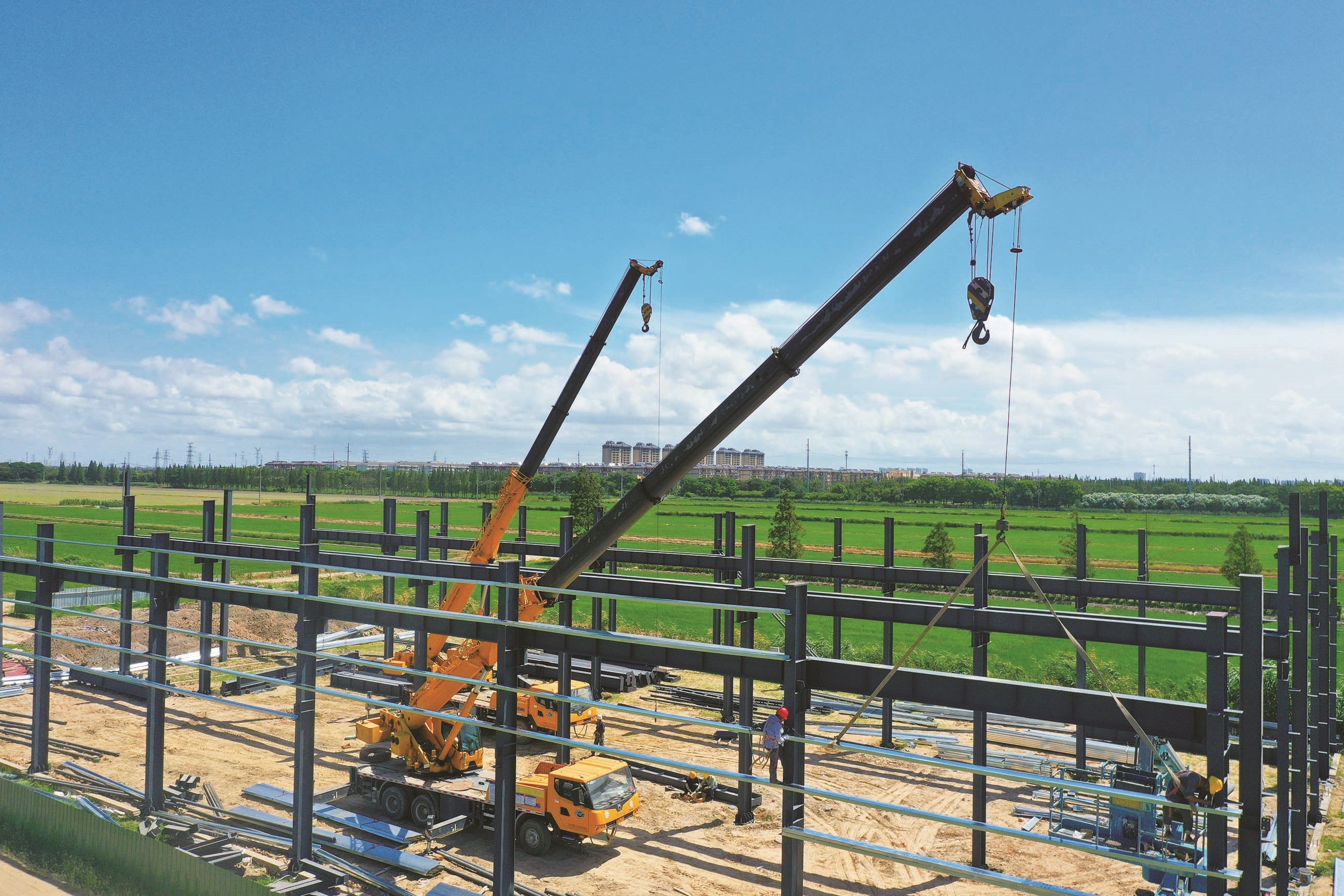 昨天,江心沙农场产业融合基地内,工人们正热火朝天地建设食品加工中心。据了解,该项目分一、二两期,共计占地119亩,总投资约950万元。建成后,江心沙农场将依托丰富的农业资源和区位优势,着力打造集农耕实践、研学科普、生态观光、休闲娱乐于一体的综合性文旅基地。