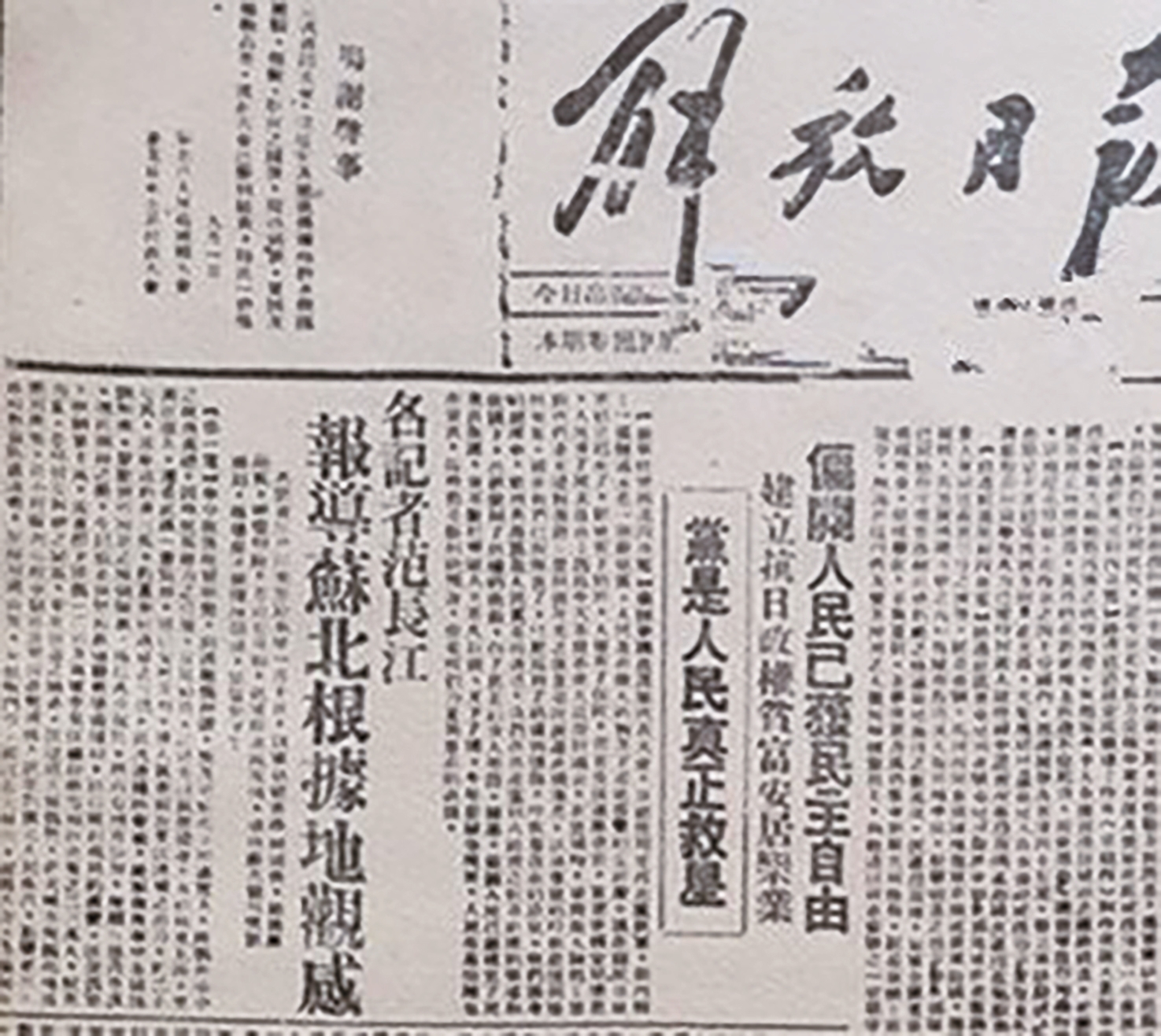 在根据地,范长江目睹了新四军和人民群众互助共建的热烈场面,以及军民结合所产生的伟大力量。很快,他就发了三篇电讯到延安,其中《名记者范长江报道苏北根据地观感》《苏北建设突飞猛进——政治经济文化提高,人民踊跃参加抗战》两篇文章刊登在《解放日报》一版头条位置。1942年9月的一天,毛泽东致电陈毅:“范长江头两篇通讯很好,已载解放日报及广播……请代我向他致慰问。”