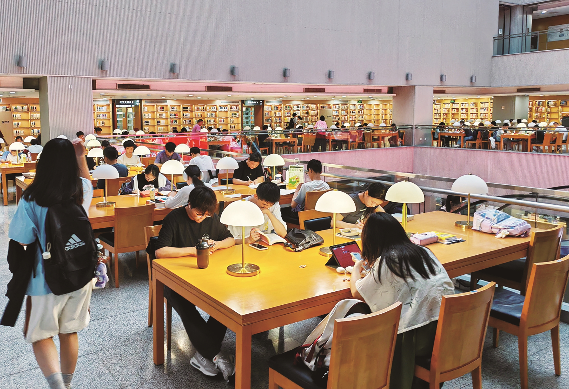 19日,市民在南通市图书馆内阅读学习。进入夏季,图书馆清凉的环境与浓厚的书香相互交融,吸引不少市民前来阅读学习,消暑度夏。 李斌摄