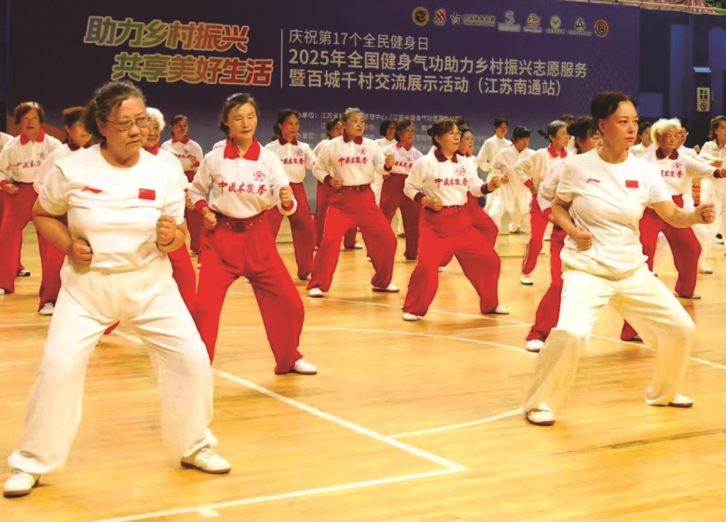 昨天是全国第17个“全民健身日”。全国健身气功“助力乡村振兴志愿服务暨百城千村交流展示”活动(江苏南通站)在市体育馆举行。活动吸引了数百名社会体育指导员、健身爱好者及市民齐聚一堂,共同见证传统养生文化与乡村活力的深度交融。 记者 李波摄