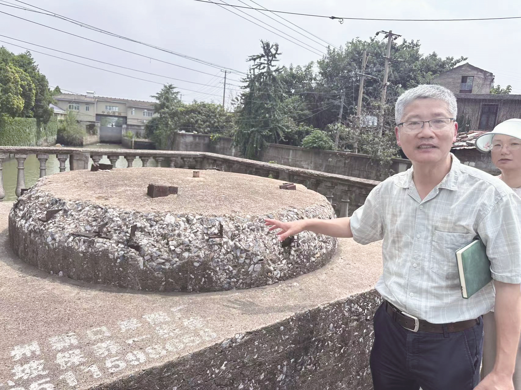 他反复强调,输电塔下部原来是没有水泥包裹的,经常被新四军锯杆捣毁,日本人无法正常生产,最终决定用混凝土包裹输电塔。