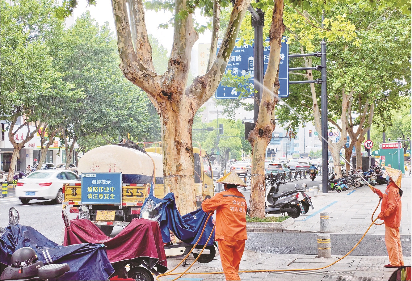 11日,工作人员在市区人民中路给行道树进行喷药治虫灭蚊。 李斌摄