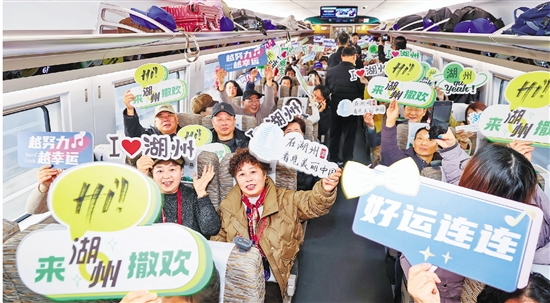 12月26日,旅客在沪苏湖高铁首发列车G9508次上合影留念。 拍友 何伟卫 摄