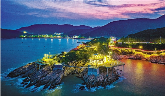 夜色中,松兰山度假区内“长”在礁石上的咖啡店引来不少游客打卡。