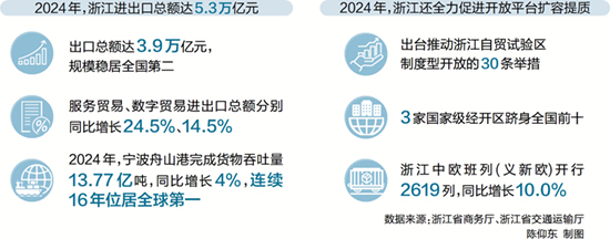 2024年,浙江进出口总额达5.3万亿元