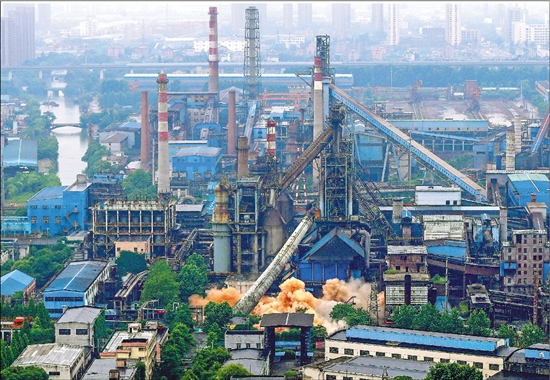2016年6月15日,见证了杭钢炼铁厂半个多世纪辉煌的老一号高炉烟囱在几声巨响中爆破拆除。
