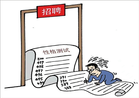 据《新华每日电讯》报道,当前,不少企业在招聘中设置性格测试环节,有公司在招聘电商运营人员时,甚至要求求职者完成550道MBTI测试题。性格测试被滥用,提示我们需要警惕隐蔽的就业歧视问题。 高晓建 作