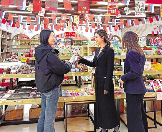 民生银行工作人员在义乌国际商贸城走访外贸客户。