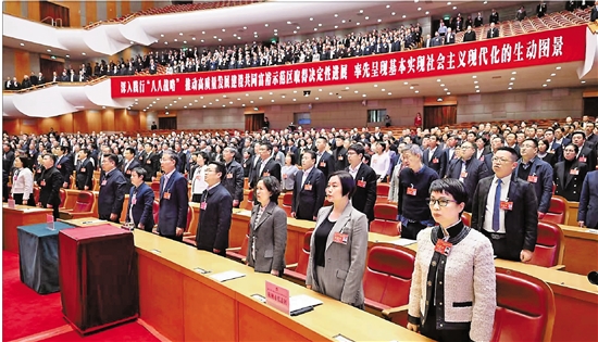 1月17日下午,省十四届人大四次会议圆满完成各项议程,在省人民大会堂胜利闭幕。 本报记者 梁臻 摄