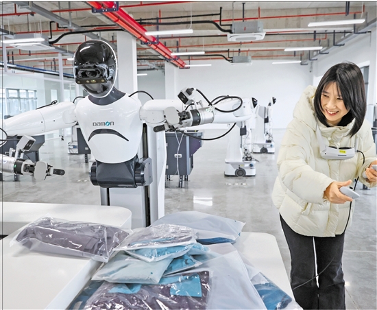 记者体验当机器人的“教练”。 共享联盟·吴兴 何伟卫 摄