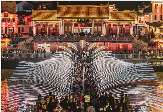 义乌市佛堂镇“春晚同款”打卡点游人如织。 王松能 摄