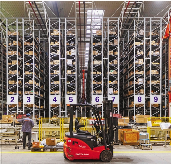 长兴经济技术开发区的诺力智能装备股份有限公司,技术人员在自动化生产线上赶制订单产品。 通讯员 许扬 摄