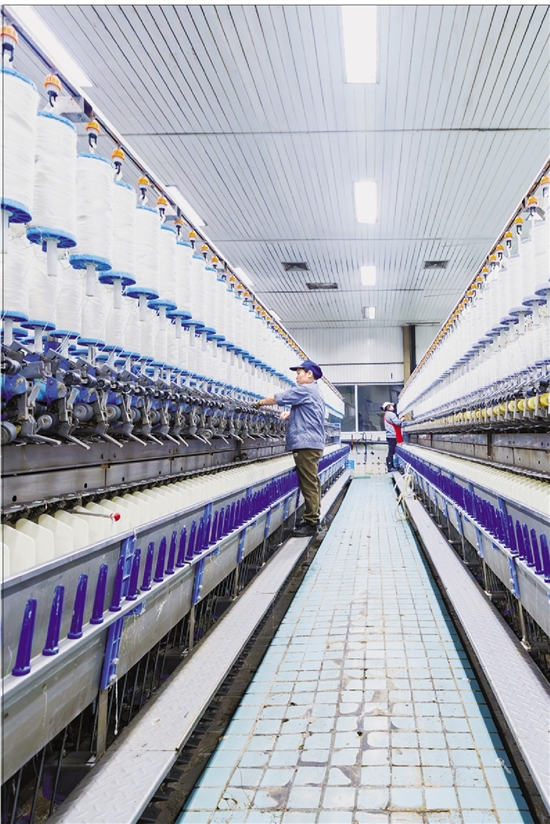 舟山市定海区的浙江金鹰共创纺织有限公司年后迅速复产,车间机声隆隆,工人干劲十足。 通讯员 余若望 黄婷 摄