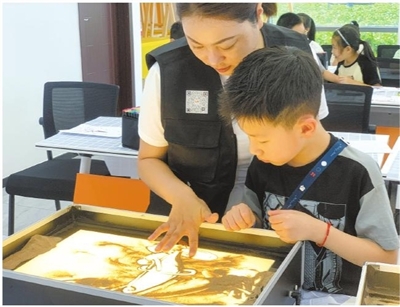 白云海鸥、船帆海浪……近日,浒西社区暑期假日学校邀请沙画老师为孩子指导沙画创作技巧,提升他们对艺术的欣赏能力和创作的想象力。在老师指导下,孩子们跃跃欲试,“画”起了亚运会帆船比赛场景,一幅又一幅充满想象力的沙画作品顿时呈现眼前,让孩子们成就感满满。 ■摄影 全媒体记者 戎志虎 通讯员 房佳婷