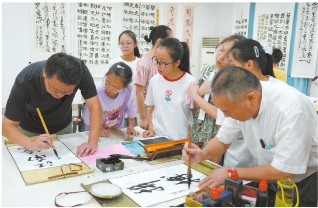 近日,宗汉街道周塘西村联合市硬笔书法家协会、宗汉街道综合文化站和润德小学,共同开展了“迎亚运,学礼仪,启智慧,扬文化”书法展活动。活动中,同学们不仅学到了书法国粹文化知识,还与书法家一同书写“绿色、智能、节俭、文明”亚运办赛理念。 ■全媒体记者 陈利群 通讯员 马胡诞