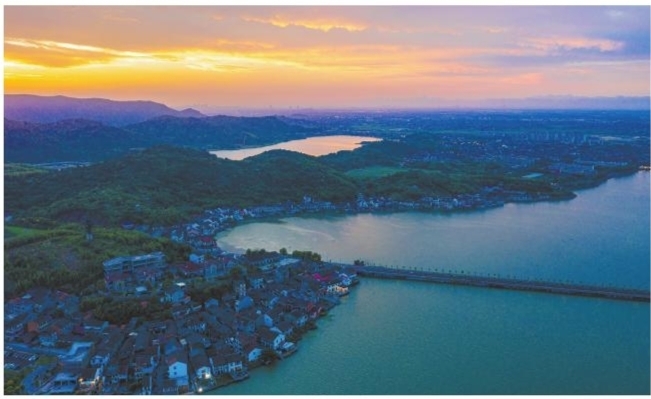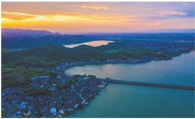 近日,晚霞中的观海卫镇双湖村在青山绿水映衬下,呈现出一幅宜居宜游的和美乡村生态画卷。 近年来,我市不断推进“千万工程”,从美丽乡村建设,再到未来乡村、和美乡村建设,实现了乡村建设的美丽蝶变,让人民群众真正体会到获得感、幸福感、安全感。 ■摄影 通讯员 成文波