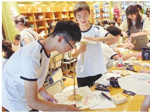 日前,阳光实验学校2024届2班的同学们相约来到书城,开展“绘一帘诗画,撑一片亚运梦”暑假社会实践活动。活动中,他们不仅了解了亚运会历史和杭州亚运会文化,还将会徽“潮涌”等亚运会元素及诗词歌赋绘于油纸伞上,以独特视角向世界展示杭州文化,讲述宋韵故事,传播亚运精神。 ■摄影 全媒体记者 陆铭铭 通讯员 章华绒 龚可爱