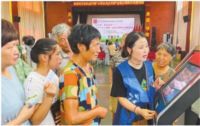 昨日,宗汉街道金堂村在村文化礼堂开展垃圾分类积分兑换活动,让村民践行垃圾分类的同时,享受到垃圾分类带来的实惠、体验分类的快乐,进一步提高村民垃圾分类的积极性和参与率,将“要我分”转变为“我要分”,共同营造和谐美好的健康生活环境。图为村民在多媒体屏前查看积分情况。