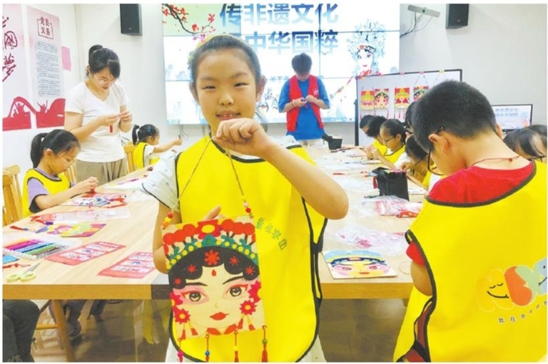 近日,在宗汉街道锦漾社区假日学校开展的“传非遗文化、扬中华国粹”手工活动上,孩子们倾听了京剧脸谱分类及代表人物讲解,欣赏了京剧名段,还在志愿者老师的指导下,亲手绘制了京剧脸谱,领悟国粹的魅力。■摄影 全媒体记者 陈利群 通讯员 王梦青