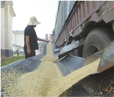 在江西省南昌县横岗国家粮食储备库,种粮大户开仓卸载粮车上的早稻(8月8日摄)。近日,江西各地进入夏粮收购期,在赣北产粮大县南昌县,当地今年早稻收获81万多亩。为做好夏粮收购,南昌县粮食部门提前对粮仓进行改造升级,安装大型仓储空调,确保粮食品质良好;同时从优化服务入手,提前公布收购价格与质量标准,延长收购时间,实行智慧粮库系统结算,及时兑付售粮款,保障粮农利益。■新华社发