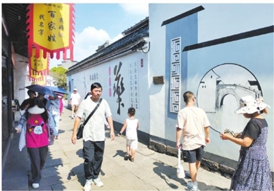 昨天,我市最高气温达到了35.8℃,在鸣鹤古镇,人流不减,不少市民、游客顶着高温游玩。 ■摄影 全媒体记者 王烨江